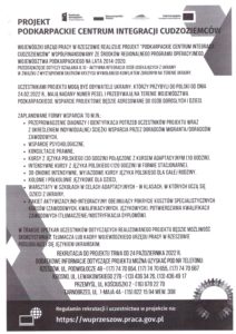Projekt „Podkarpackie Centrum Integracji Cudzoziemców”